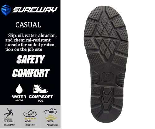 • Rugged,Tough,Long Lasting: SUREWAY Composite Toe boots for men are built for the toughest jobs. SUREWAY work boots are ideal for a range of outdoor activities,casual wear and industrial applications - go-to boots if you standing/walking on concrete all day, if you're a carpenter, plumber, engineer, maintenance worker,truck driver,farmer, machinist, mechanic, electrician, or anyone else who needs durable and comfortable work boots while doing tough dirty jobs.