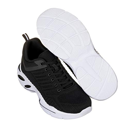 CALTO Men's Invisible Height Increasing Elevator Shoes - Black/White Super Lightweight Sporty Sneakers - 2.6 Inches Taller - Q330 - Size 11 D(M) US 5