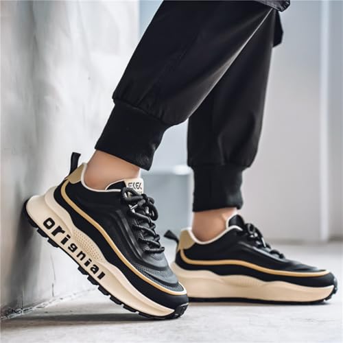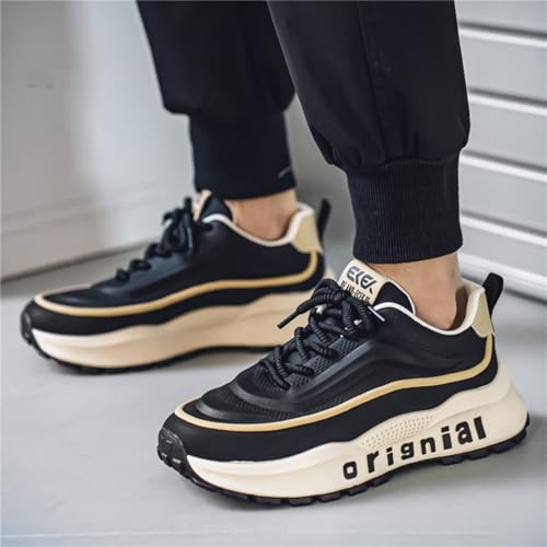 Mens Breathable Leather Lace Up Platform Sneakers Fashion Casual Non-Slip Shock Absorbing Heighten Walking Workout Dad Shoes 6