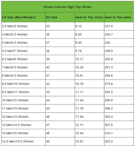 • Fashion High Top Shoes:Our canvas sneakers are designed with canvas upper and rubber sole,providing support for those who walk long distances.Each step is cushioned in comfort,ensuring a pleasant walking experience that lasts all day