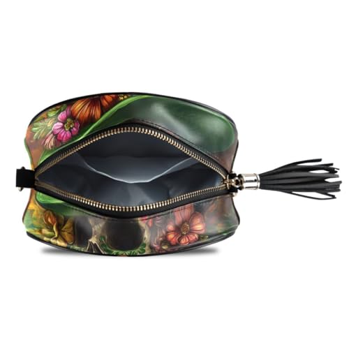 ALAZA Women's St Patrick's Day Floral Skull PU Leather Crossbody Bag Shoulder Purse with Tassel 1