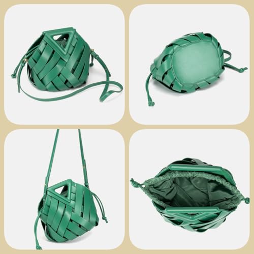 Woven Bucket Crossbody Bags for Women, Retro Leather Tote Handbag Top-handle Hobo Purse Inverted Triangle Shoulder Bag 5