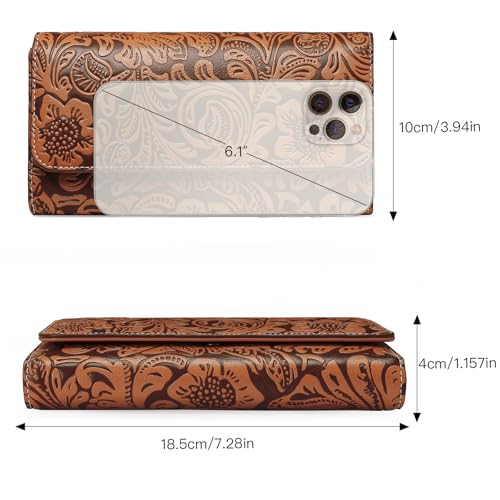 GOIACII Women's Wallet RFID Blocking Long Clutch Ladies Purse Vegan Leather Embossed Flower Brown 6
