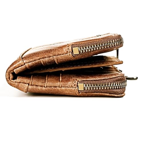 small womens wallet Leathear Chain Compact Card Holder Zipper Pocket Wallet RFID Blocking Card Case Purse with ID Window(brown5) 1
