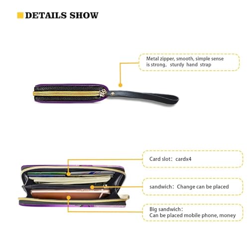 • Design and Structure:It is printed on both sides and has 4 card slots, The wallet is designed with a sandwich zipper to hold valuables,two sides of the sandwich can be placed large denomination banknotes mobile phones