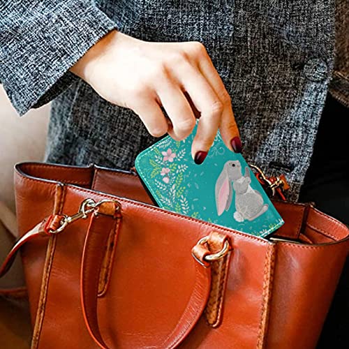 HOT ! Happy Easter Two Hares, Floral Wreath, Floral Ornament on TurquoiseGrey Credit Card Coin wallet, RFID Blocking Compact Women Leather Card Holder, Key Change Organizer, Zipper Purse Clutch Pouch