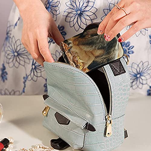 German Shepherd Dog Lies on Autumn Falling Foliage LeavesGrey Credit Card Coin wallet, RFID Blocking Compact Women Leather Card Holder, Key Change Organizer, Zipper Purse Clutch Pouch Pocket 6