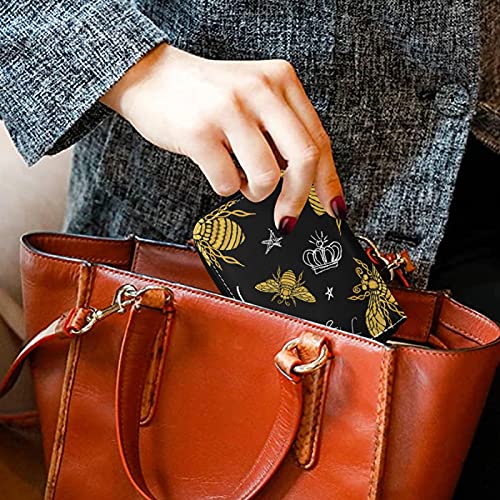 HOT ! Oyihfvs Yellow Bee Sweet Bees Queen Crown Stars On Dark Credit Card Coin wallet, RFID Blocking Compact Women Leather Holder, Key Change Organizer, Zipper Purse Clutch Pouch Multi 3 4.7x3.1x0.8 Inch
