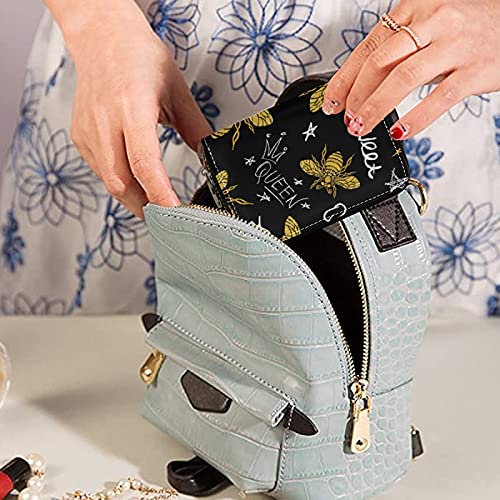 Oyihfvs Yellow Bee Sweet Bees Queen Crown Stars On Dark Credit Card Coin wallet, RFID Blocking Compact Women Leather Holder, Key Change Organizer, Zipper Purse Clutch Pouch Multi 3 4.7x3.1x0.8 Inch 3