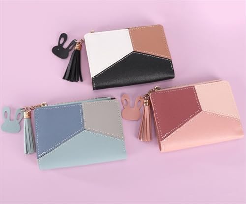 HOT ! Wallet Short Stylish Zipper Stitching Contrast Color Coin Purse(Black)