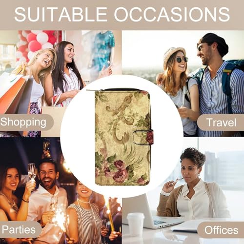 Floral Rose Victorian Style Leather Multifunctional Wallet with 12 Card Slots for Unisex 7