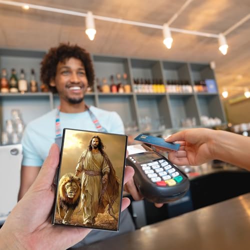 HOT ! Credit Card Holder Wallet for Women - Ultra-Slim Metal Card Wallet with RFID Blocking | Mini 6-Slot Card Case Wallet, Secure & Stylish Metal Credit Card Holder, Lion Of Judah Jesus