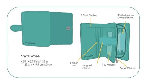 Shag Wear Kitten Garden Small Wallet for Women and Teen Girls Vegan Faux Leather Teal 4.5" 6