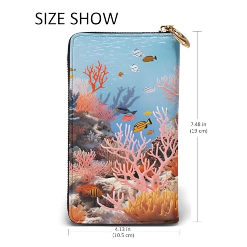 HOT ! Coral Reef Wallet For Women Men Clutch Rfid Blocking Leather Wallets Large Capacity Purse Credit Card Holder Money Case With Zipper Phone Holder Long Travel Purse