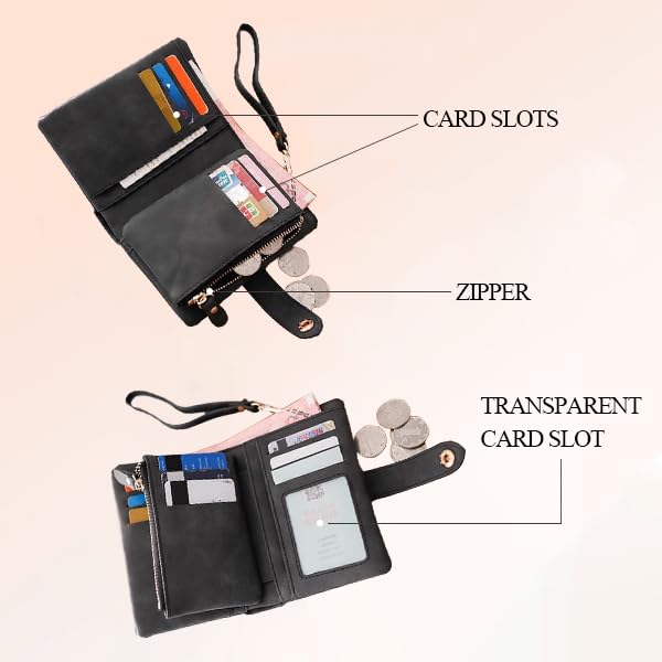 • Large Capacity:Our womens wallet has 15 credit card slots, 1 main cash pocket, 1 inner long zipper pocket and 1 small zipper pocket for change and coin, 1 ID / photo window, and 1 wrist strap. Plenty of room in this wallet to easily hold all your cards and money