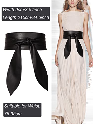 Women Obi Belt Bow Tie Wrap Wide Waistband Faux Leather Wide Cinch Belt for Dresses - Black 7