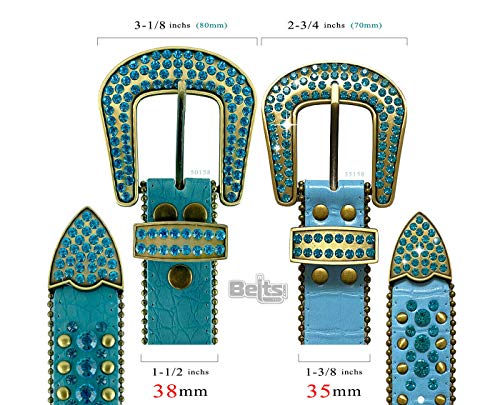 • 1-3/8"(35mm) wide rhinestone leather belt with 5 belt holes, buckle set material Zinc.