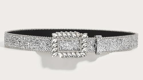 Women Men Rhinestone Belt Western Cowgirl Cowboy Bling Sequin Belt for Jeans Pants Fit 28"-38" Waist 4