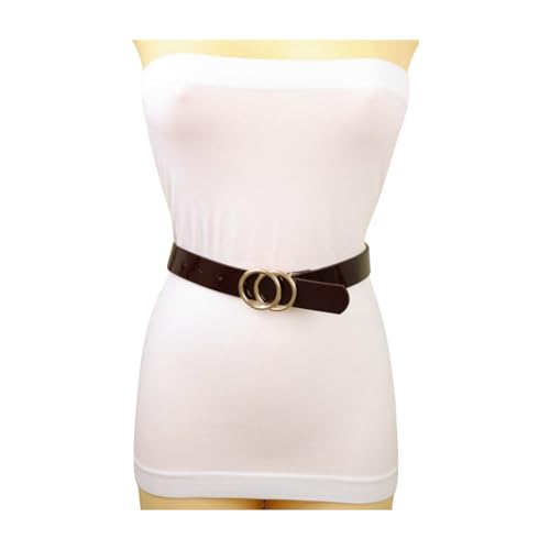 Trendy Fashion Jewelry Women Belt Faux Patent Leather Gold Metal Cirlces Buckle Size S M Chocolate Brown 1