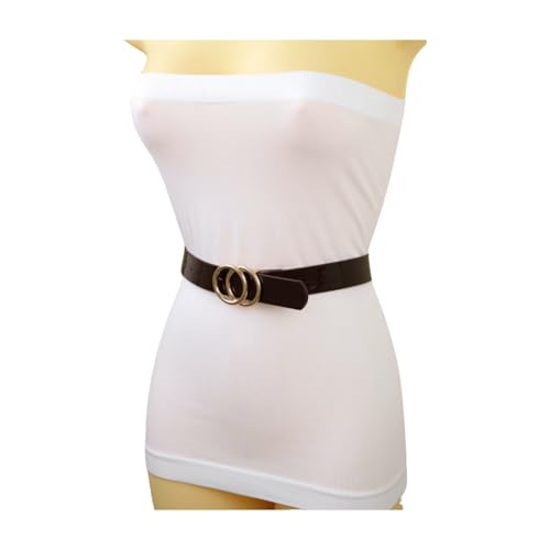 HOT ! Trendy Fashion Jewelry Women Belt Faux Patent Leather Gold Metal Cirlces Buckle Size S M Chocolate Brown