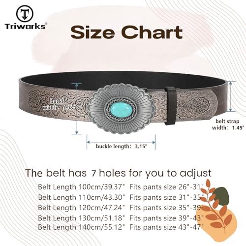 Women's Western Leather Belt Vintage Medieval Turquoise Buckle Belt Ladies Cowgirl Leather Waist Belt 6