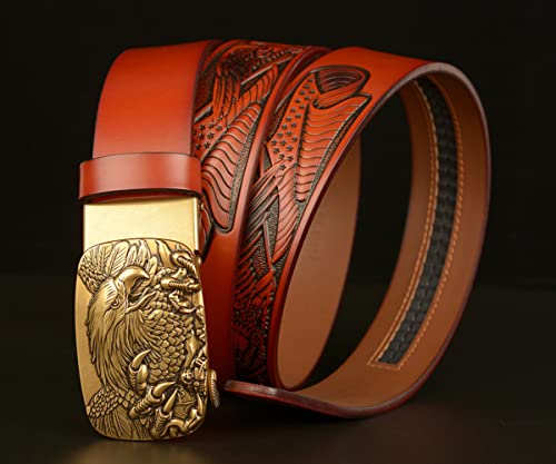Men's Belt, Slide Ratchet Belt for Men, with Sculpture Plaque Genuine Leather Tactical Belt 6