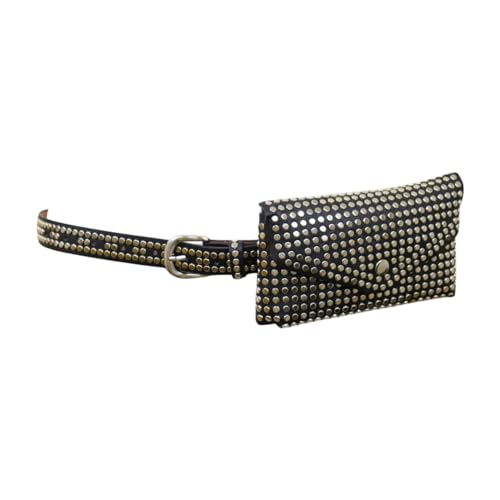 More information about Women Fashion Skinny Black Faux Lerather Belt Hip Waist Silver Metal Studs Wallet Bag Size S M z037