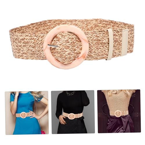 Boho Woven Grass Belt for Women Natural PP Straw Wide Waist Belt for Summer Vacations Dresses Casual Wear 5