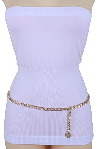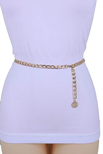 TrendyFashionJewelry Women Fashion Narrow Waistband Belt Hip High Waist GOLD Metal Chain Coin Charm Size XS S M 1
