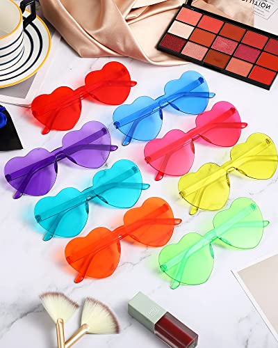 Frienda 8 Pairs Heart Shaped Sunglasses for Women Rimless Heart Glasses Candy Color Sunglasses for Party Favor 5