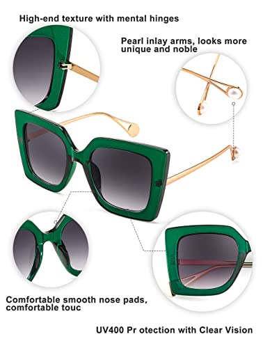 FEISEDY Sunglasses Womens Trendy, Oversized Square Shades, Pearl Inlay Cat Eye Frame UV400 Protection B2625 1