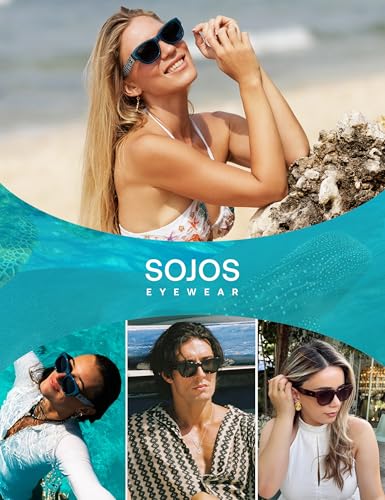 HOT ! SOJOS Ocean Collection Classic Polarized Square Sunglasses for Women Men Recycled Plastic Frame Eco-Friendly UV400, Bloom
