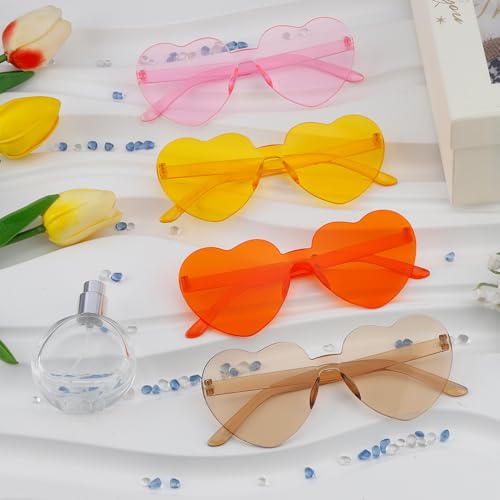 • FASHION ACCESSORIES: heart shaped sunglasses are designed with heart shaped rimless frames in fresh and transparent candy colours, which can be matched with any daily outfits and party decorations, ideal for dating, travelling and attending all kinds of parties