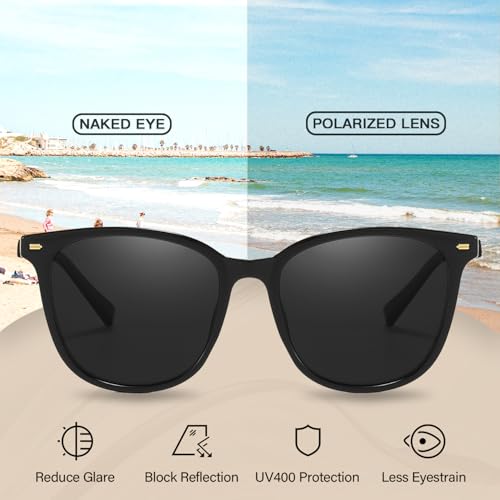 HASFOX® Women's Polarized Sunglasses | UV Protection Square Oversized Shades | Mirrored Trendy Stylish Sunnies | with Case 3