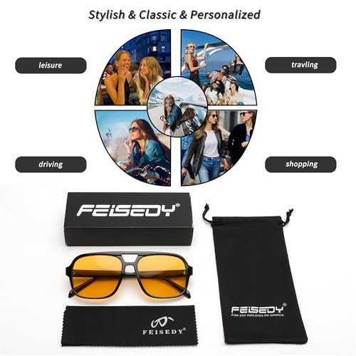 • HIGH QUALITY MATERIALS-FEISEDY square aviator sunglasses are made of high-quality plastic frames and resin lens material, UV400 protection lenses, durable lightweight materials and reinforced metal hinges. It is smooth,comfortable and durable.Suitable for both men and women, unisex retro shades