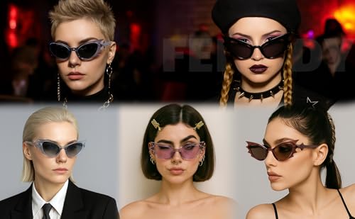 FEISEDY Women Men Cat Eye Sunglasses Bat Shades, Women's Funny Party Sunglasses for Halloween B9165 5
