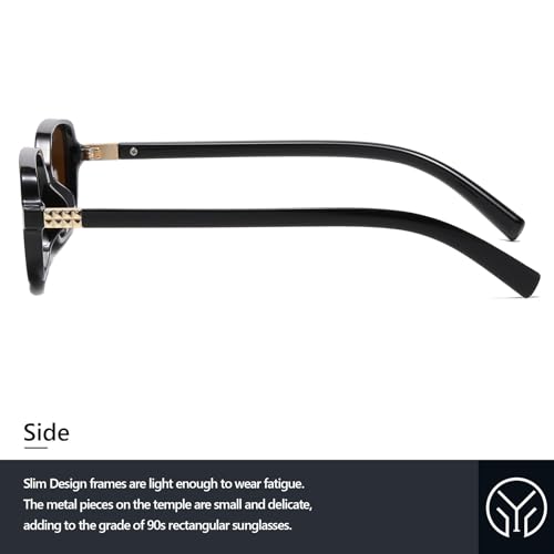 Retro Rectangular Sunglasses for Women Men Trendy Small Square Sun Glasses 90s Vintage Shades (Black/Brown) 5