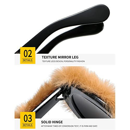 willochra Soft Fur Velvet Glasses for Women Handmade Fur Sunglasses Fashion funny Red Trend Shades Glasses 3