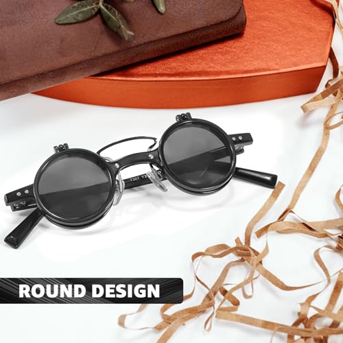 • 🏖 Small Circle Flip-up Design: Double lens flip-up vintage round sunglasses have a personalized gothic look that is timeless in style. the best choice for parties and 90's events.
