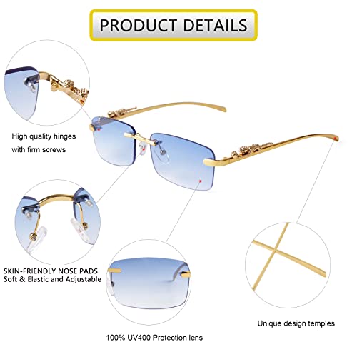 • 【FASHION SUNGLASSES FOR MEN 】Unique frameless design, adjustable nose pieces; Sleek metal arms with Exquisite metal hinge make it durable and shatterproof. Suitable for taking pictures, ins style, prom party, makeup decoration, clothing accessories. These exquisite & cool sunglasses make you more attractive!