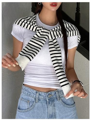 Verdusa Women's Casual Shawl Wraps Striped Knitted Knotted Shawls Scarf Cape 5