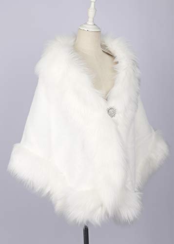 More information about Bridal Faux Fur Wrap Wedding Fur Stole with Brooch Evening Party Warm Shrug Cape