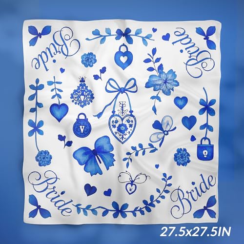 HOT ! Hosrnovo Something Blue Gift for Bride, 27.5IN Bridal Scarf Bandana Wedding Accessories for Brides Bachelorette Party Favors Bridal Shower Gifts