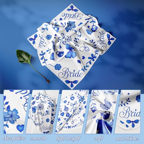 Hosrnovo Something Blue Gift for Bride, 27.5IN Bridal Scarf Bandana Wedding Accessories for Brides Bachelorette Party Favors Bridal Shower Gifts 7