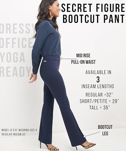 • SECRET FIGURE : Womens dressy office yoga pants flatter your body in all the right places! Bootcut shape lengthens your legs. Look and feel slim and chic. Secret figure is your secret weapon!