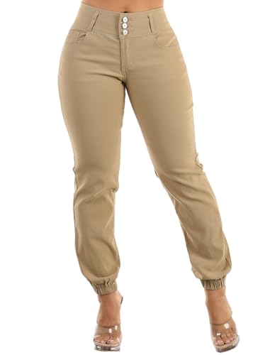HOT ! Moda Xpress Women's Juniors Stretchy High Waisted Relaxed Fit Casual Cargo Denim Jogger Jeans and Pants for Women