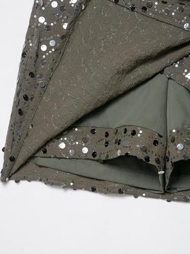 Women's Elegant Crossover Front Sequin Mini Skirt with Twist Detail and Side Slit, Hidden Side Zip Closure 7