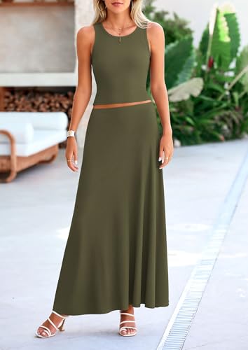 More information about PRETTYGARDEN Women's 2 Piece Maxi Skirt Sets Casual Summer Knit Cropped Tank Top High Waisted Long Skirts Outfit