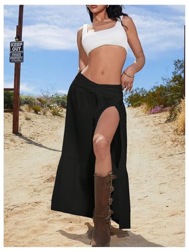 • Features: high slit skirt for women, maxi skirt, low rise, ruffle hem, flowy skirt, loose long skirt, boho vacation skirt, solid color, maxi skirt with slit, cowgirl outfits