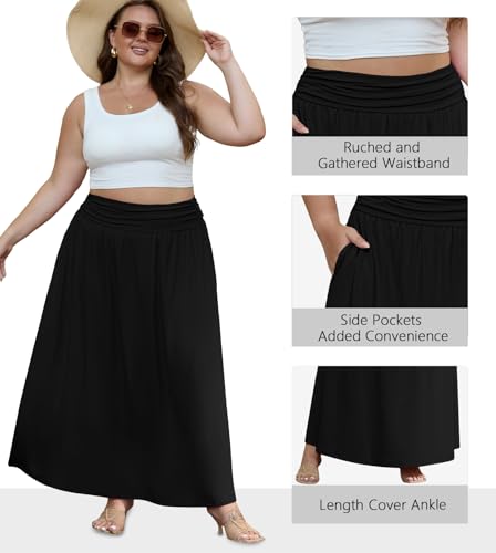 OLRIK Plus Size Maxi Skirt with Pockets 2025 Summer Elastic High Waisted A-Line Flowy Long Skirts 2